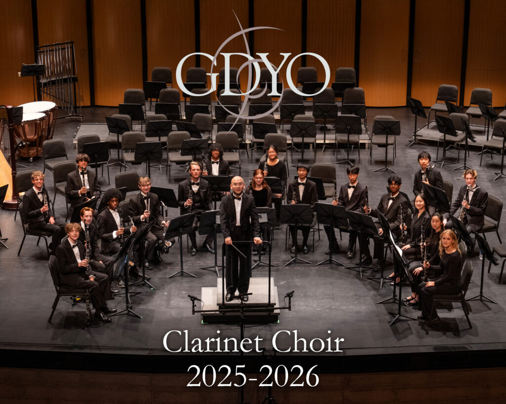 The Greater Dallas Youth Orchestra Clarinet Choir is the newest member of the GDYO family. They perform arrangements of standard repertoire as well as compositions written specifically for the idiom. Members are high school seniors and younger.